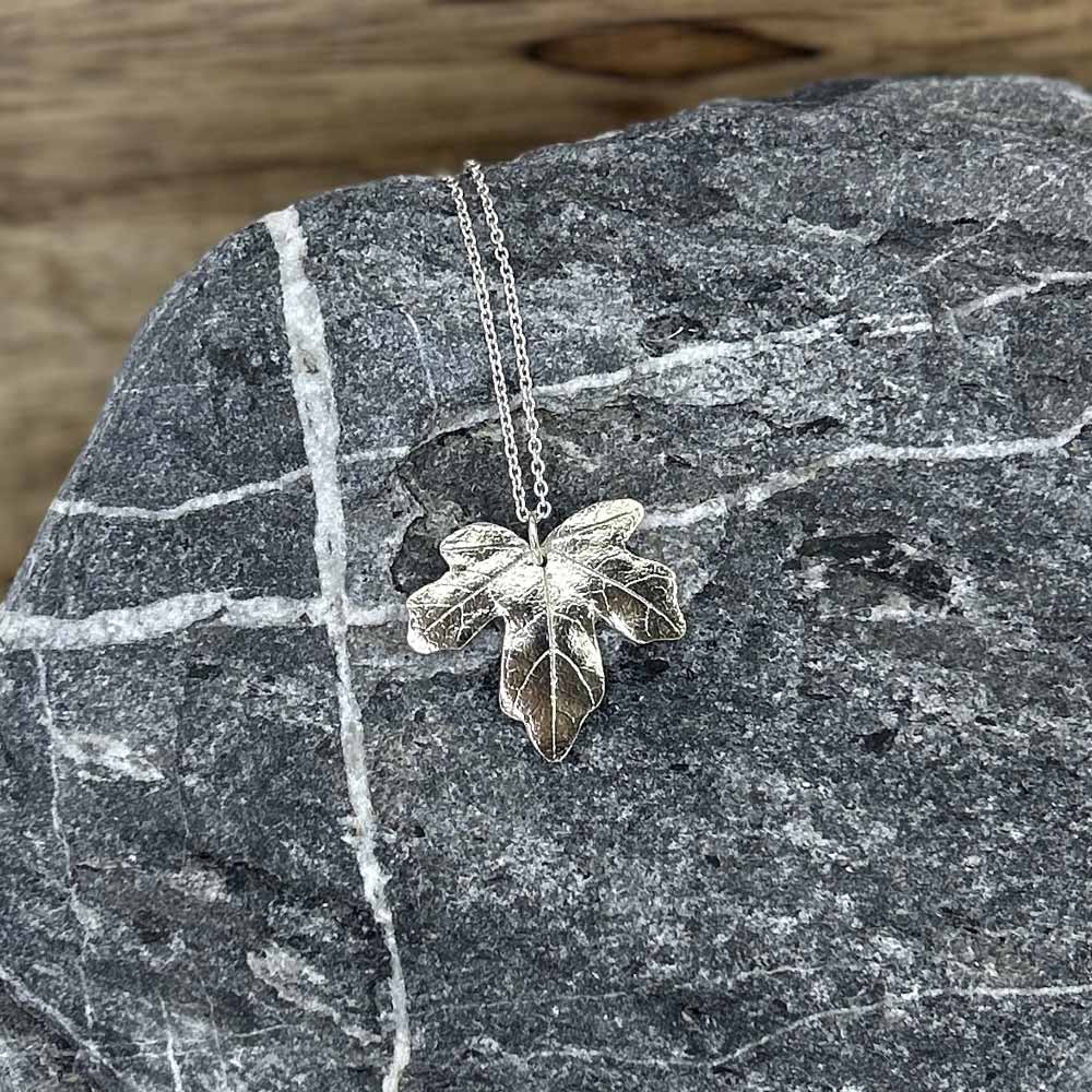 Kleiner eleganter Anhänger aus einem Feldahorn-Blatt gefertigt.