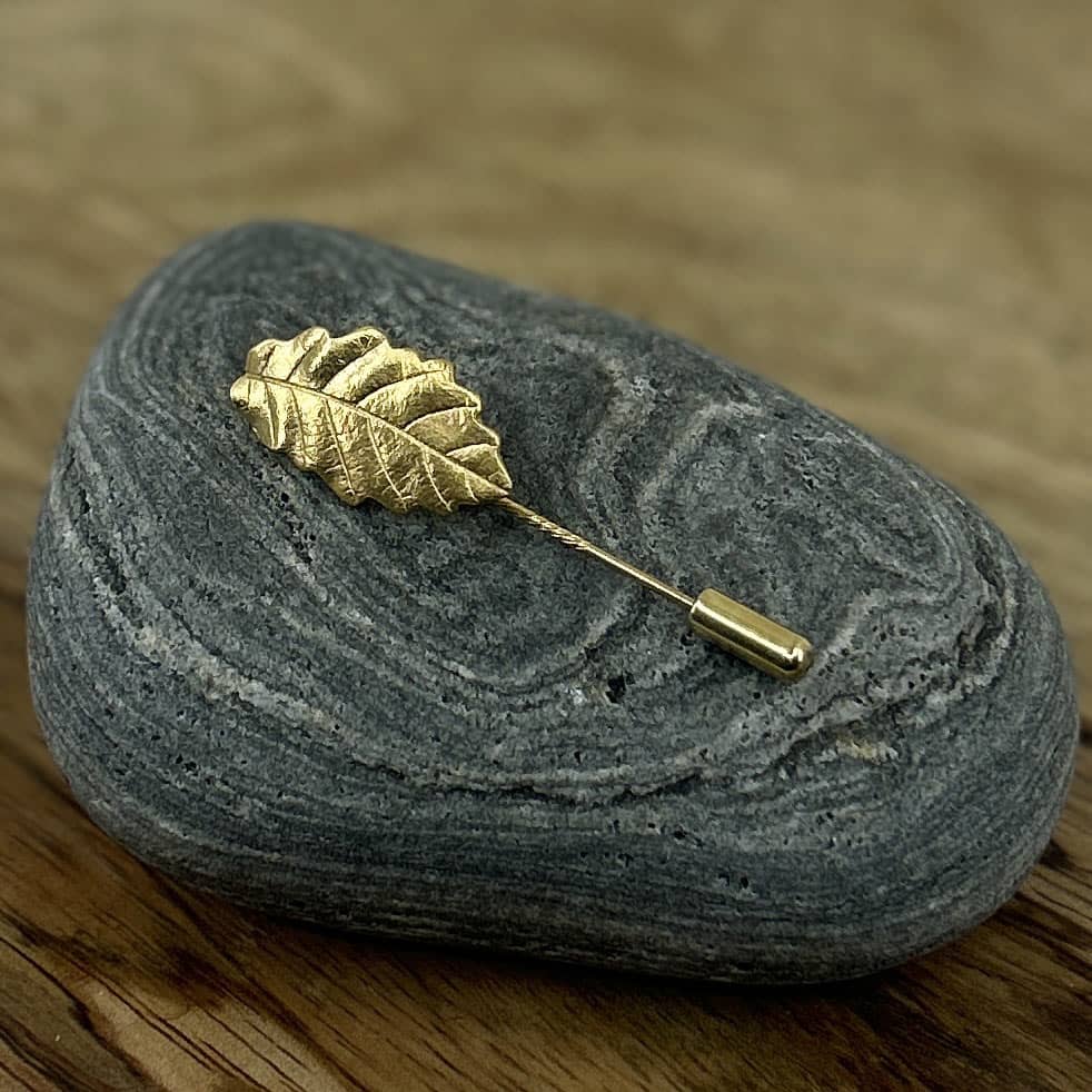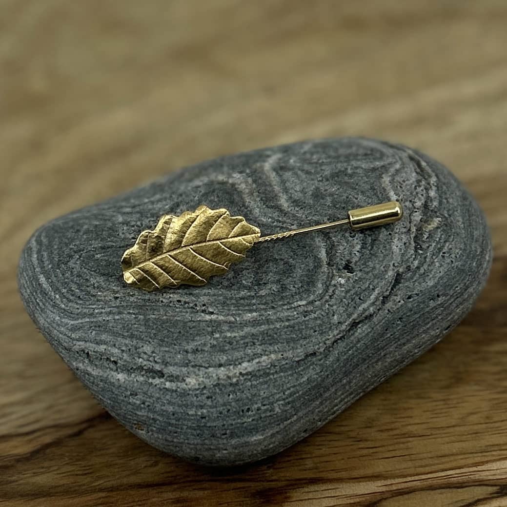 Ein grünes echtes Eichen-Blatt wurde zum Schmuckstück verwandelt. Die besondere Form des Blattes und die Blatt-Struktur machen die Anstecknadel zum Unikat – ein wunderbarer Blickfang an Schals, Sakkos oder Hüten!