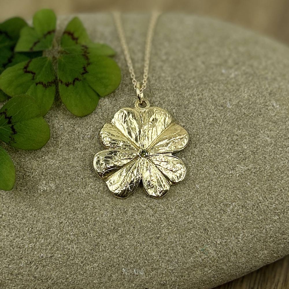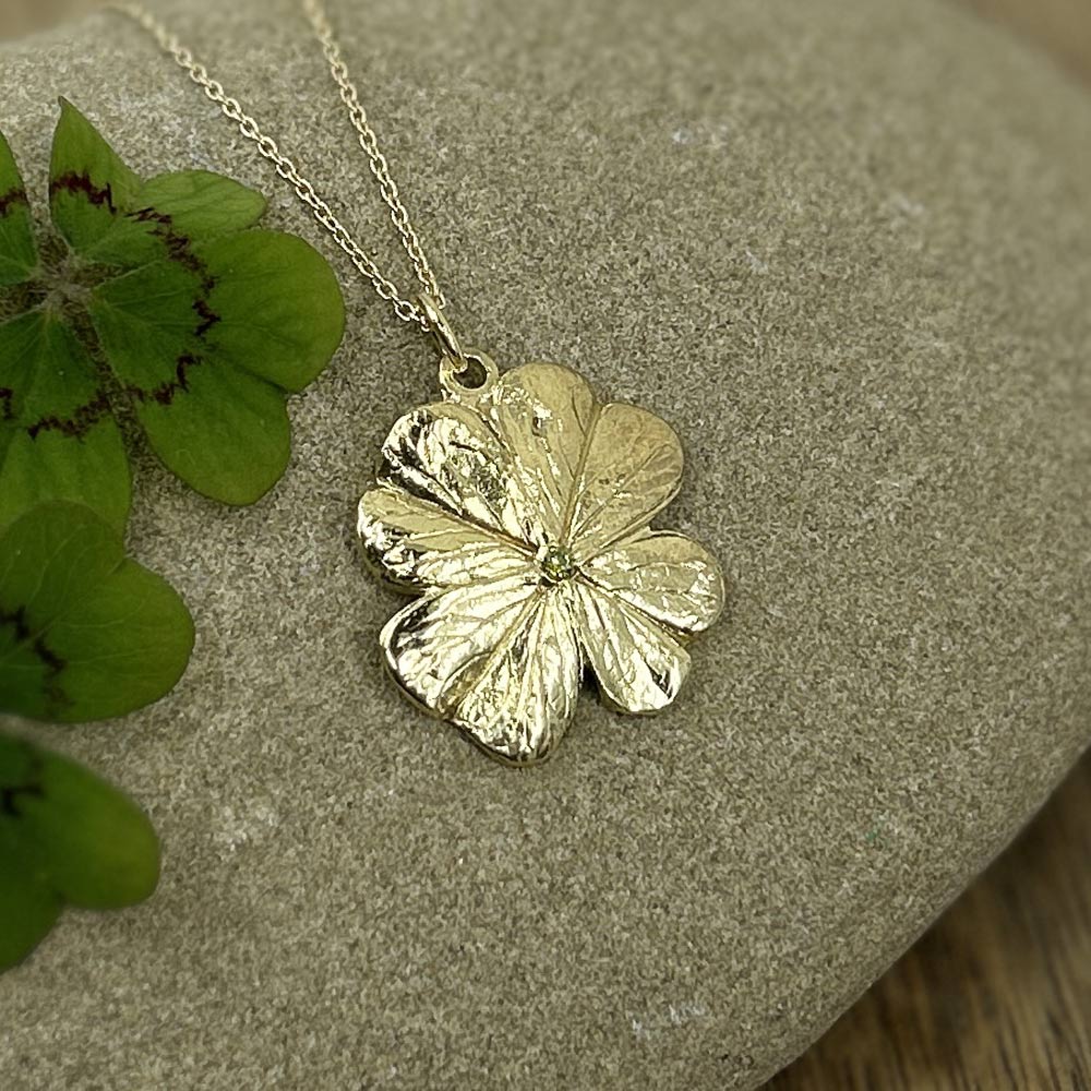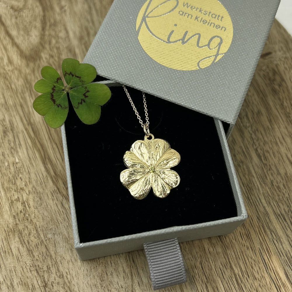 Hol dir deinen Glücksbringer für 2026! Anhänger aus einem echten vierblättrigen Klee-Blatt gefertigt, ergänzt durch einen grünen Zirkonia.