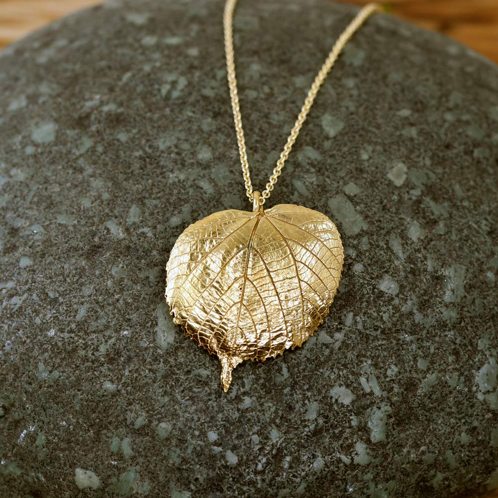 Linden-Blatt Anhänger in Feinsilber, gelbvergoldet.
