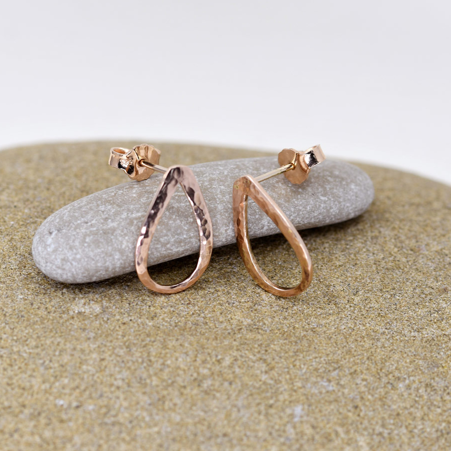 Elegante Ohrstecker mit gehämmerten Goldtropfen.