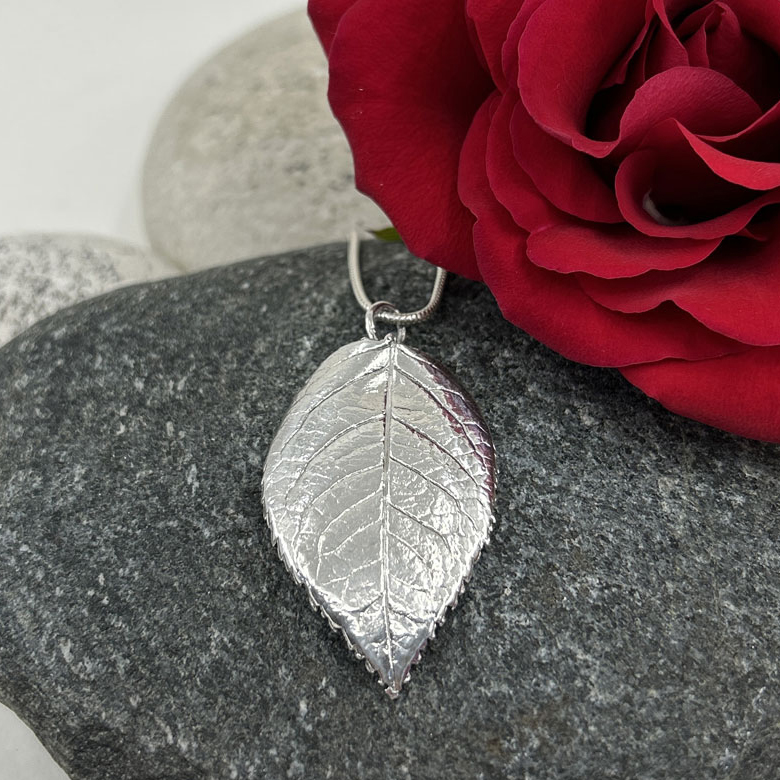Rosen-Blatt Anhänger in Feinsilber.
