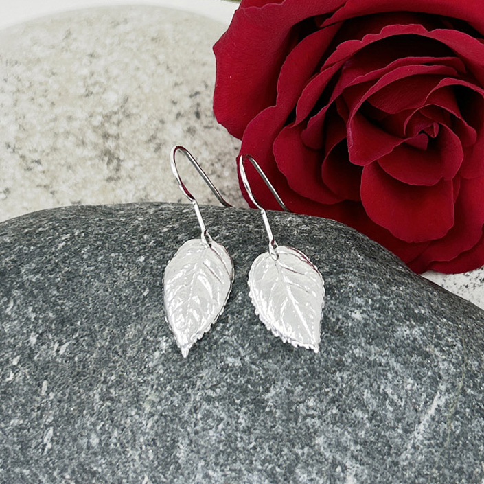 Die elegante Rosen-Blätter hängen frei beweglich am Ohrhaken.