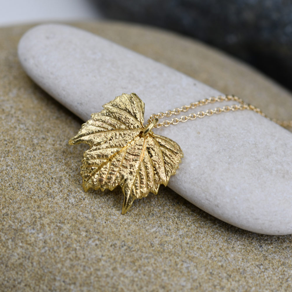 Für die Natur-Schmuckstücke wähle ich besondere Blätter aus. Dieses Weinblatt stammt aus der schönen Wachau! In liebevoller Handarbeit wird in der Werkstatt Feinsilber Schicht für Schicht auf das ausgesuchte Blatt aufgebracht und anschließend gebrannt. Dadurch kann die Blattstruktur bis ins kleinste Detail übertragen und erhalten werden. Jedes Schmuckstück ist ein Unikat!